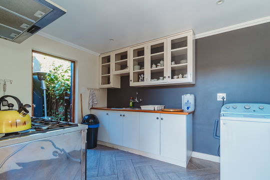 This beautifully appointed home offers four well-appointed en-suite bedrooms (sleeping 8), a fully equipped gourmet kitchen, and a stylish open-plan living and dining area. Stacker doors open to a sun-soaked patio with a built-in braai, creating a seamless flow between indoor comfort and outdoor leisure — perfect for relaxed entertaining in a tranquil setting.